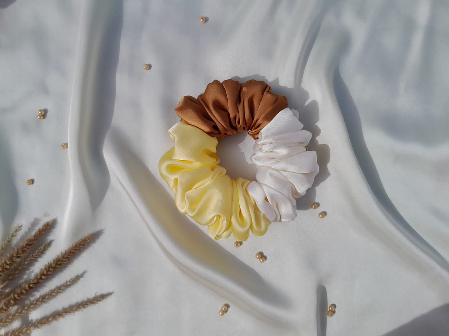 "Discover the perfect blend of style and comfort with our exquisite collection of scrunchies. Our scrunchies are not just hair accessories; they're fashion statements designed to elevate your everyday look.