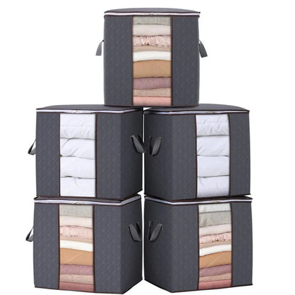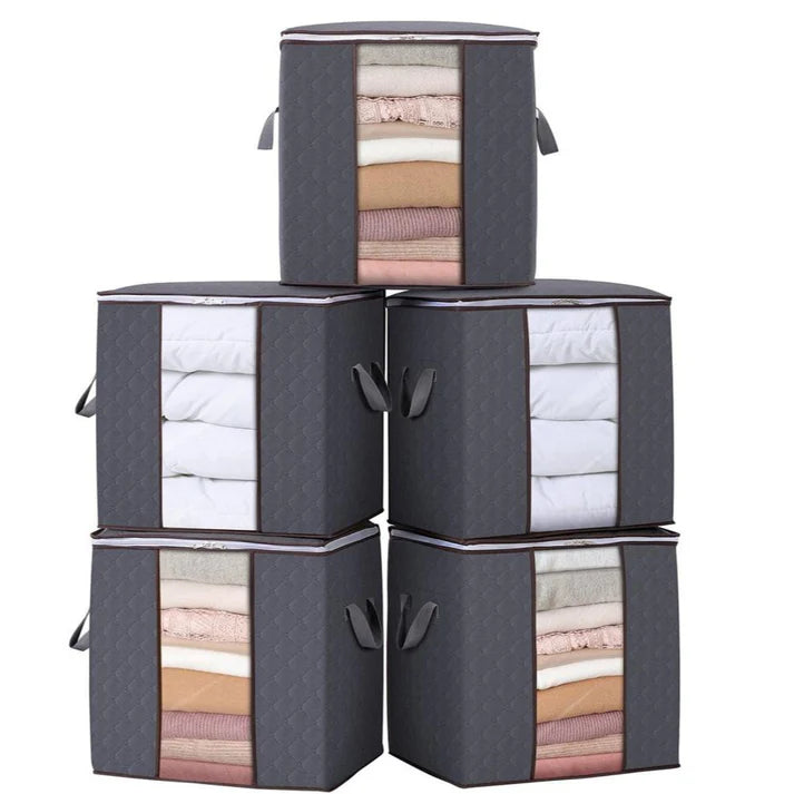 Grey Storage Organizer Bags (5pcs) – Foldable, Durable & Dustproof Home Storage Solution | Widetraders