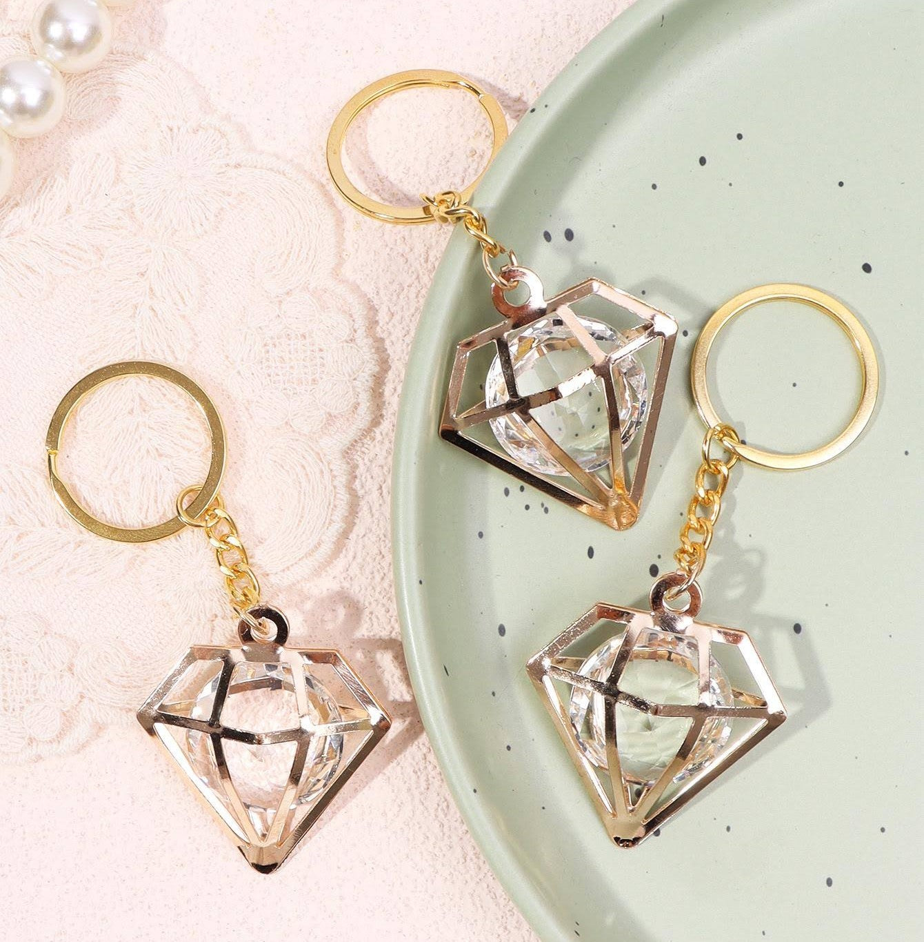 Practical Elegance: Beyond its glamorous appearance, this keychain is designed for practical use. The sturdy keyring provides a secure attachment for your keys, while the diamond-shaped charm enhances the overall aesthetic appeal.